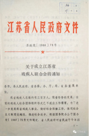 残疾是重要致贫因素,往往是一人残疾一家致贫。1988年6月4日,江苏省人民政府批准成立江苏省残疾人联合会,落实民生实事项目,制定惠残助残政策,积极回应贫困残疾人迫切的脱贫需求。