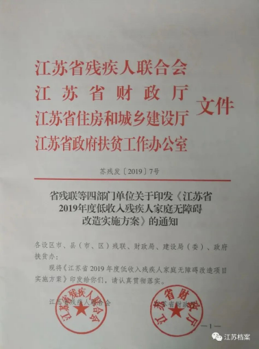 省残联等四部门单位关于印发《江苏省2019年度低收入残疾人家庭无障碍改造实施方案》的通知