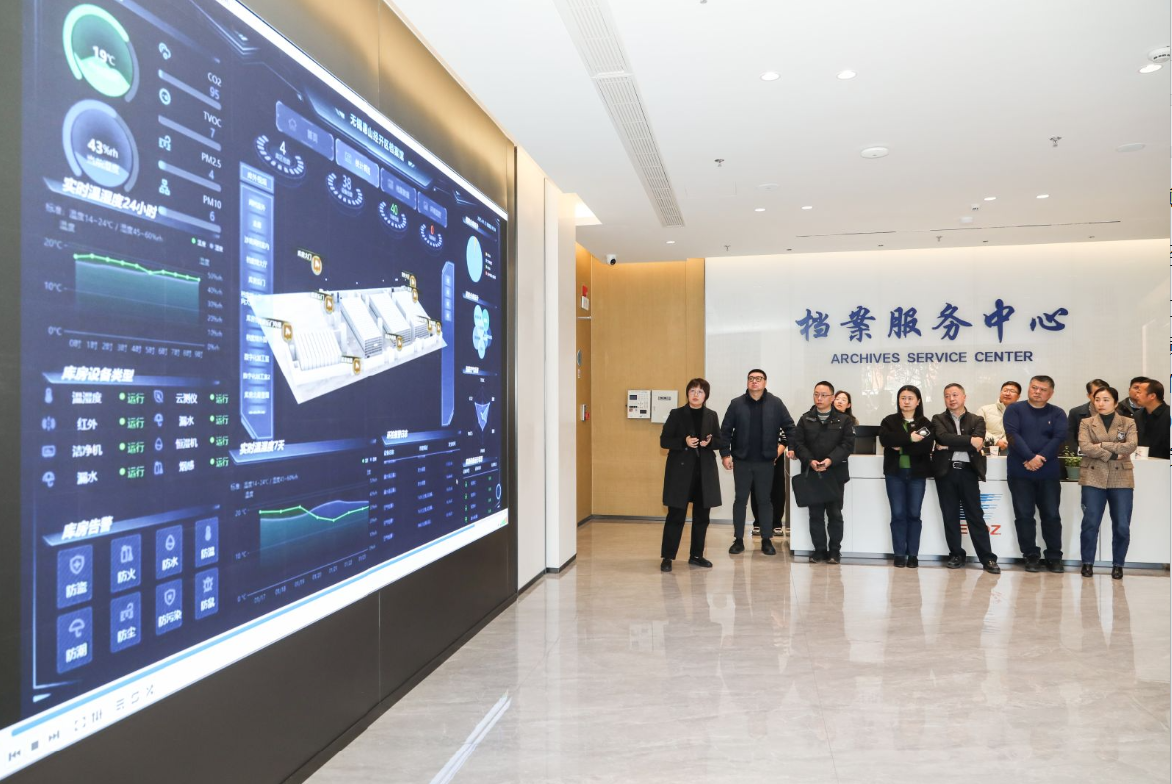 全体与会人员实地参观了惠山经开区档案馆。该馆在档案资源体系建设、安全管理、数字化成果及应用等方面取得扎实成效,为各开发区提供了直观、可借鉴的实践样板。惠山经济技术开发区管委会副主任杨以军现场介绍了开发区以档案工作赋能营商环境优化、支撑产业创新集群建设的总体思路与实践。