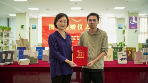 冯晓群副馆长代表扬州市档案馆、扬州市地方志办公室向学院图书馆捐赠《清宫扬州御档选编》《扬州档案馆藏书画精品选》《扬州市志》《中国淮扬菜志》《中国雕版印刷志》等珍贵图书70余册,并将学院纳入图书赠阅单位,持续为校师生提供档案与方志阅读资源。图书馆副馆长徐辉军代表图书馆接收捐赠图书并颁发捐赠证书。